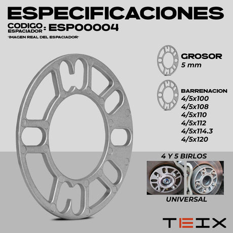 Espaciador Universal 5mm 4/5x100x108x110x112x114.3x120