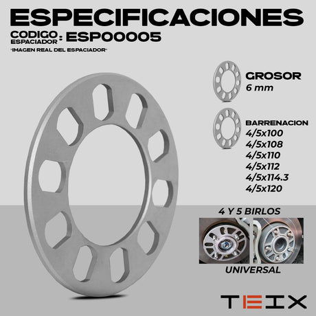 Espaciador Universal 6mm 4/5x100x108x110x112x114.3x120