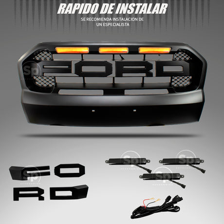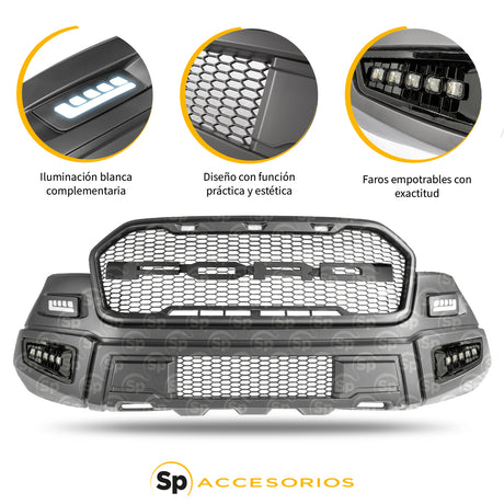 PARRILLA TIPO RAPTOR LED AMBAR PARA FORD RANGER 2017 - 2019