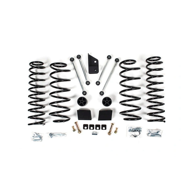 Lleve su Wrangler JL a nuevas alturas con este kit de elevación de 3" de Zone Offroad. Este kit de elevación de 3" incluye todo lo necesario, desde resortes helicoidales de longitud completa y extensiones de tope hasta eslabones de barra estabilizadora más largos, soporte de barra trasera y arandelas de leva inferiores. Obtén la apariencia, el rendimiento y la capacidad que tu Jeep merece con espacio para llantas de hasta 37".