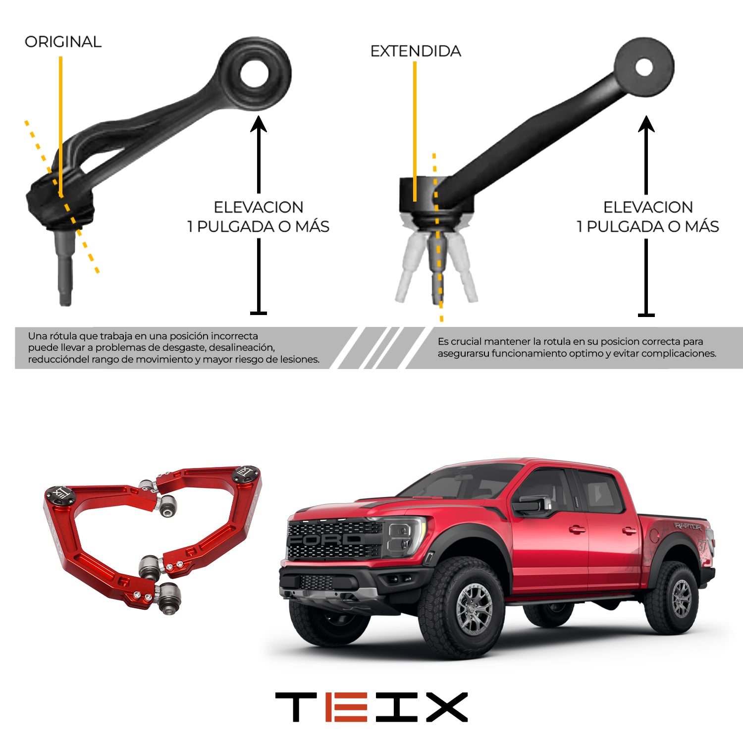 Mejora el rendimiento y la estética de tu F150 con el par de horquillas TEIX rojas, diseñadas para ofrecer mayor resistencia, estabilidad y control en cualquier terreno. Fabricadas con materiales de alta calidad y un diseño reforzado, estas horquillas son ideales para quienes buscan desempeño off-road sin sacrificar seguridad ni estilo.