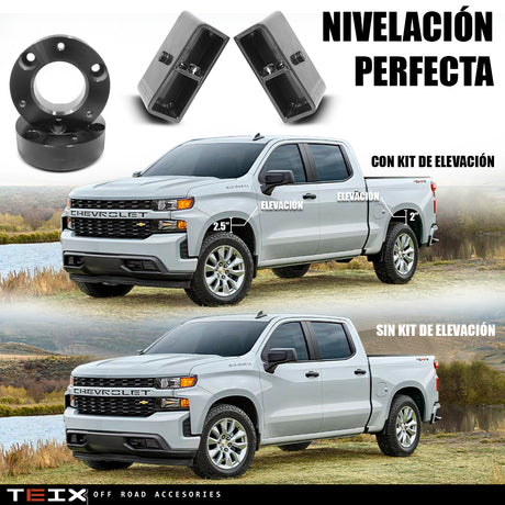 KIT ELEVACIÓN SUSPENSIÓN 2.5PULG CHEVROLET SILVERADO/CHEYENNE, GMC SIERRA 1500 2007 AL 2022