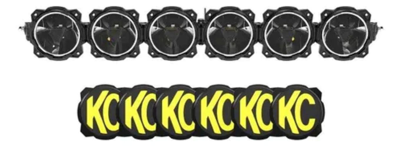 (6) Cubiertas de luz Gravity de 6" - Negras con logotipo KC amarillo